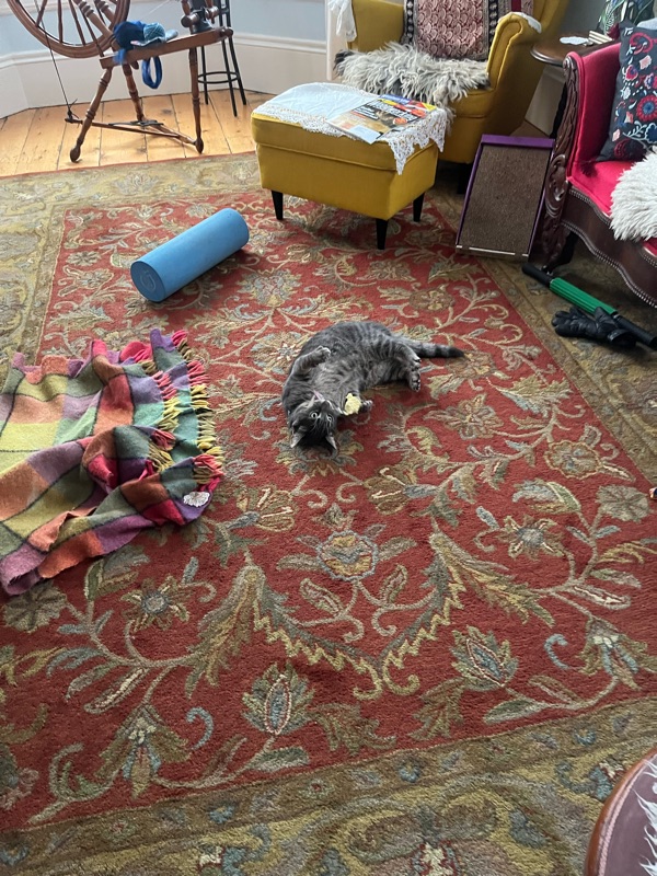 I found some Christmas gifts while I was packing last night. The cat is thrilled with his cat nip mouse.