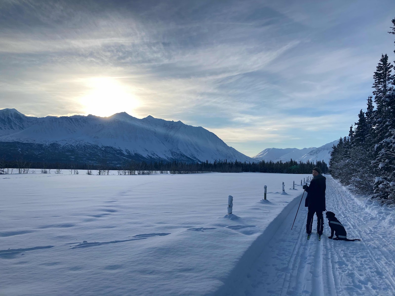 There is sun, just not much! We skied around a farmers fields and got amazing vistas.