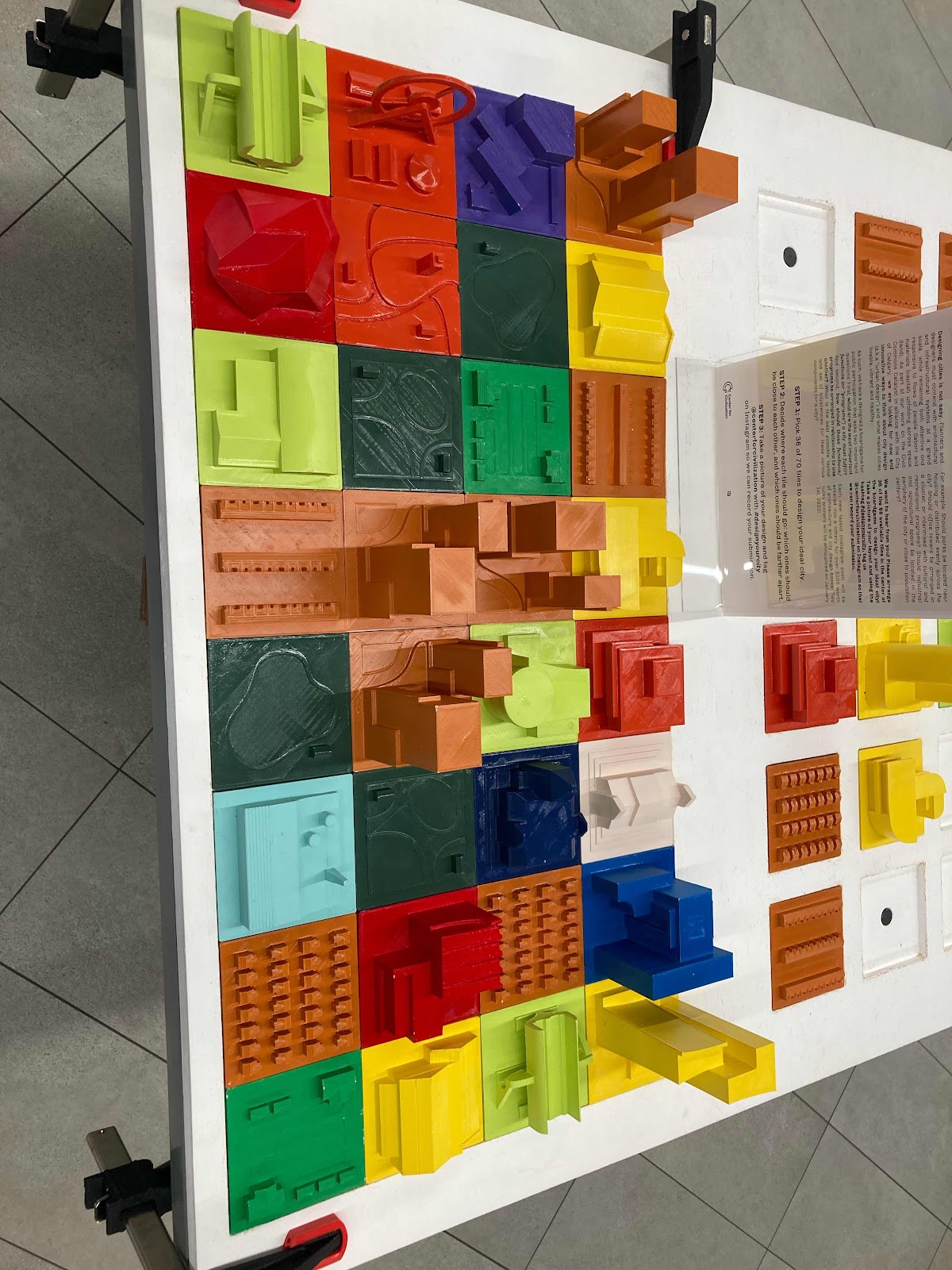 At the Calgary Central Library there was an exhibition inviting you to build a city. What fun! We built with lots of farms and gardens, two transit hubs and no parkades!