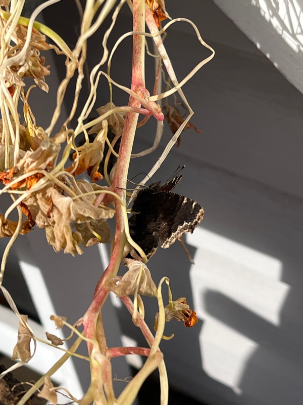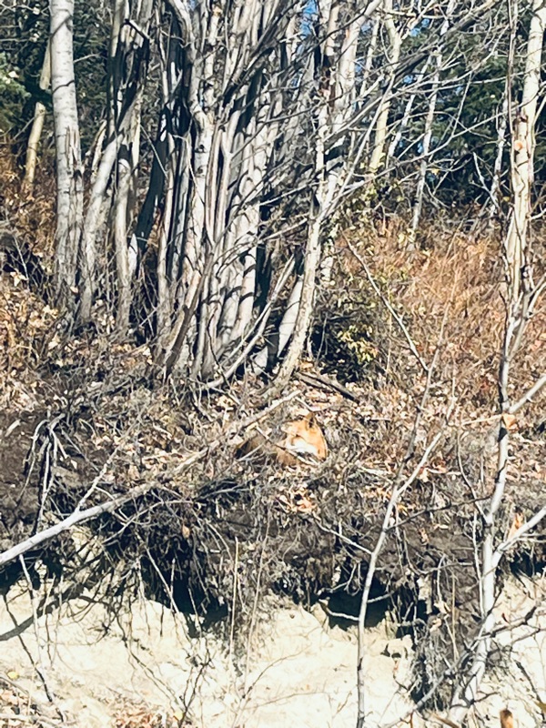 And on my walk, this fox curled up and made itself comfortable within 3 m of the stairs that everybody uses to get between downtown and the airport. Its tiny fur perfectly matches the colour of the autumn leaves and foliage it was snuggled into.