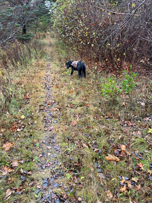 Scape and I walked in the blustery rain along the old rail trail which has numerous wild apple trees. We both enjoyed ourselves.
