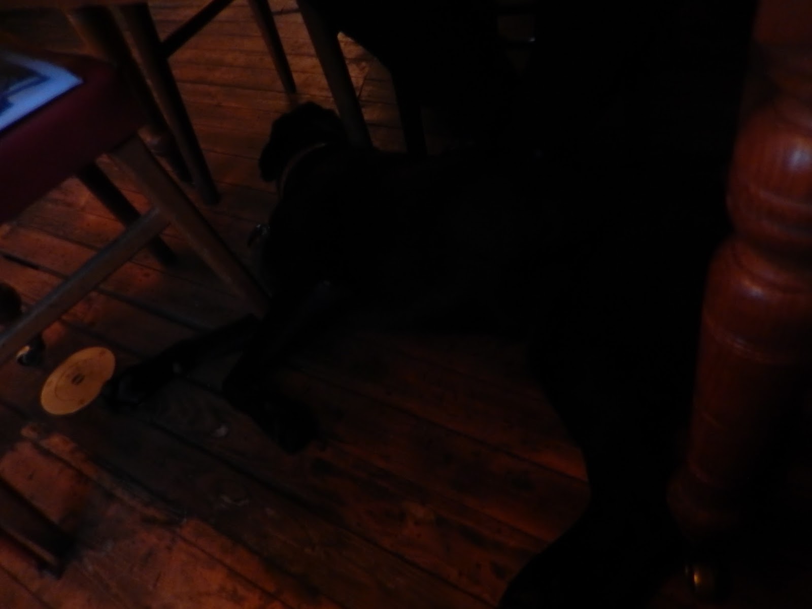Last night was a prime example as my people had just finished their meal and beer when the server was astounded to discover me under the table, quietly snoozing. He agreed that 'ninja dog' was an appropriate label. I'd post photos, but you wouldn't be able to see me anyway.