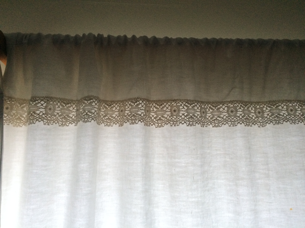 I was gifted a beautiful piece of lace last summer by a neighbour holding a yard sale. The only condition on the gift was that I had to use it. It had been in her stash for decades. It was tatted lace made by her grandmother. A lovely ivory lace crisp and wonderful. I thought about it for a few months considering a dress or top but then I thought about the French linen and our need for drapes in the 'library'. ...