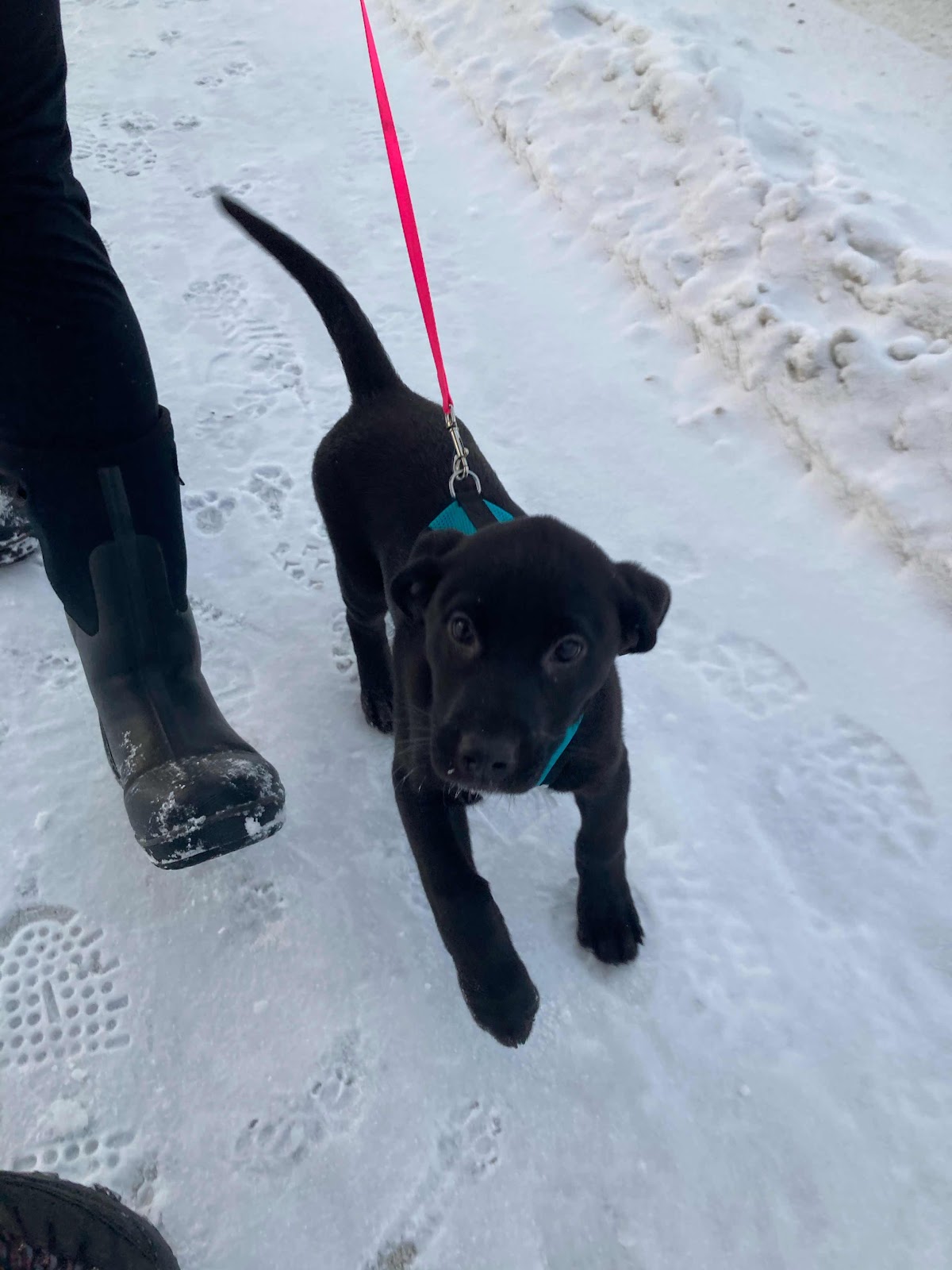 Now that Scapa has had her second Parvo shot we feel more comfortable taking her for walks around the neighborhood. She’s 12 weeks old, and cute as a button!