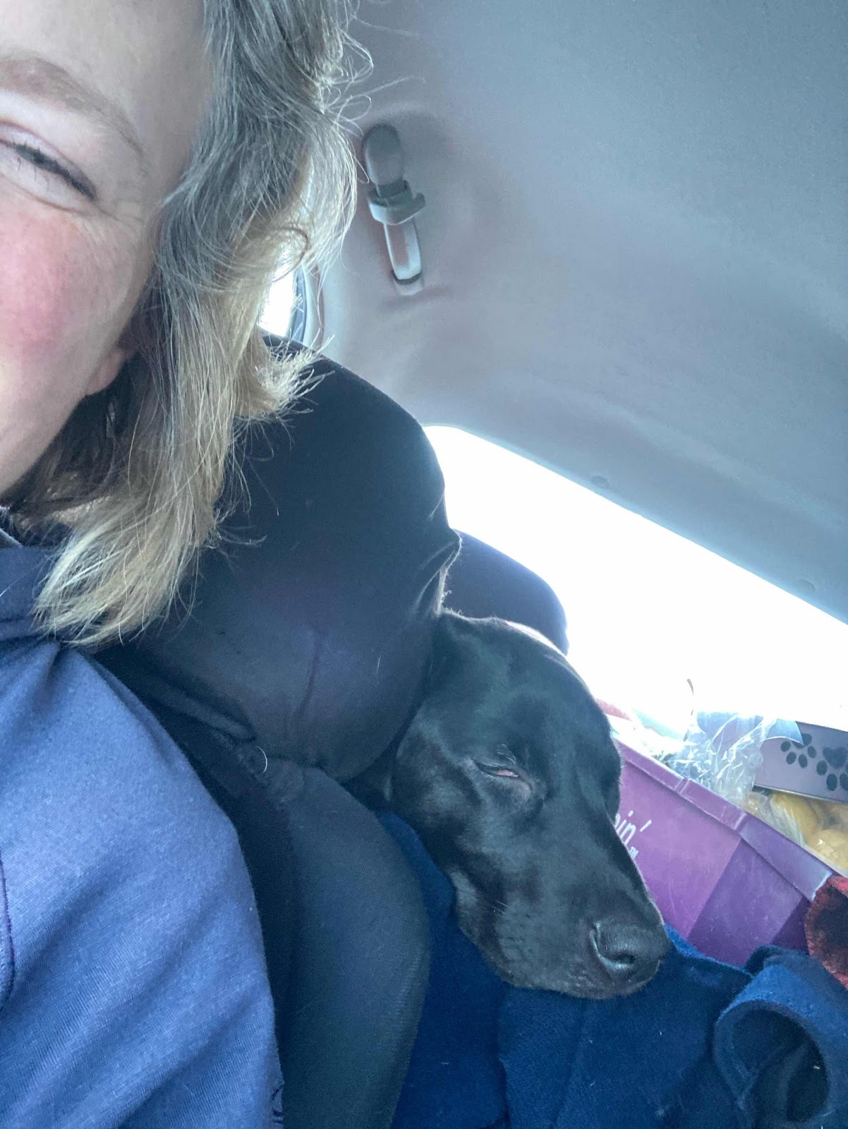 It turned cold so the car is packed to the gills with everything we might possibly need on the highway and for an almost weeklong stay out in Haines Junction. Scapa is in a very familiar spot to me, from some of our road trips with Isla. And she seems comfortable about it.